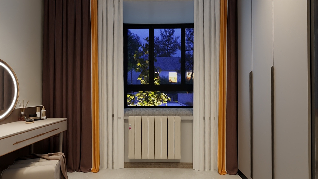 金色暖气片与暖黄色或米色的墙面相搭配,能够营造出温馨而舒适的氛围。